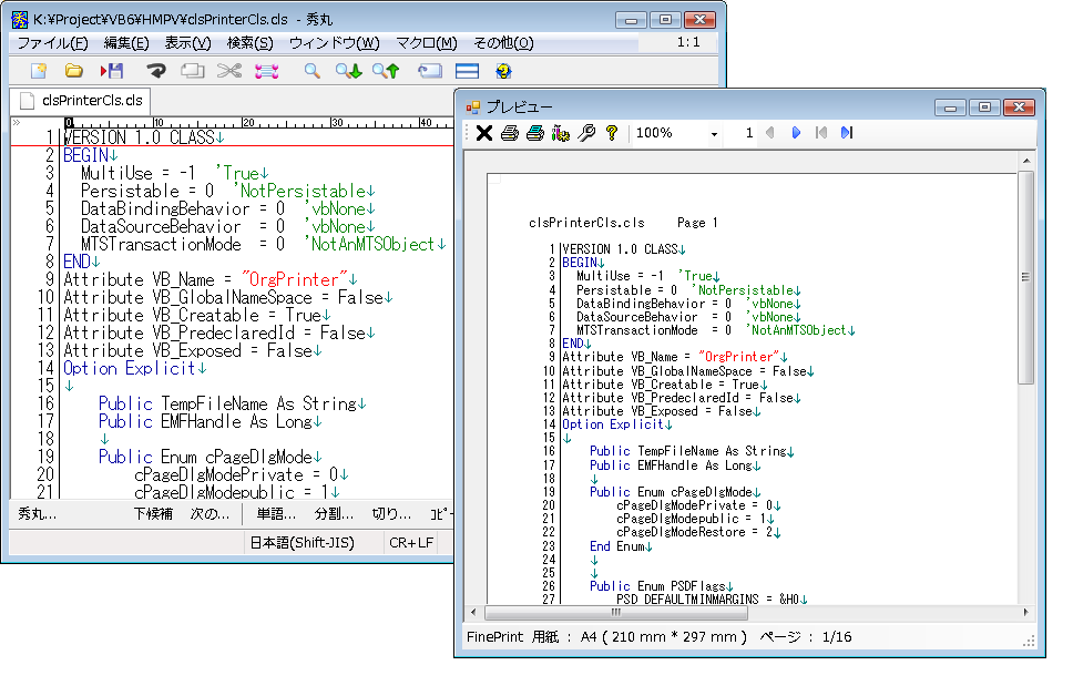 秀丸パブリッシャーは、秀丸エディタの編集画面をそのまま印刷することが出来ます。