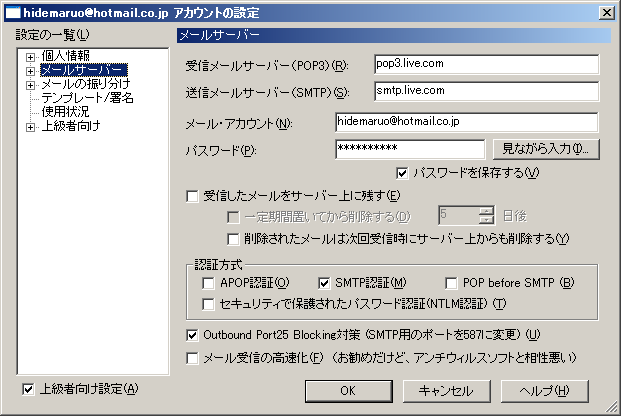 I サーバーを検索中 - smtp.mail.yahoo.co.jp