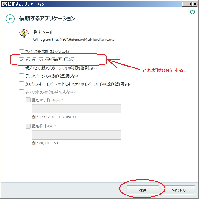 | ■ 秀まるおのホームページ(サイトー企画) > セキュリティソフトの設定方法 > カスペルスキーさん製品(Kaspersky Internet Security等)と秀丸メールの利用 |