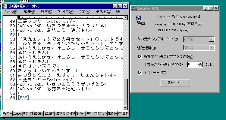秀丸エディタで二人書きセット動作イメージ