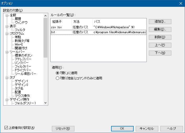 秀丸ファイラーClassicだけで動作する関連付けを設定できます。