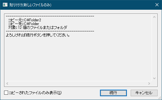 「貼り付け(新しいファイルのみ)」コマンドは、Windowsに標準付属のRobocopyを使って貼り付けをします。