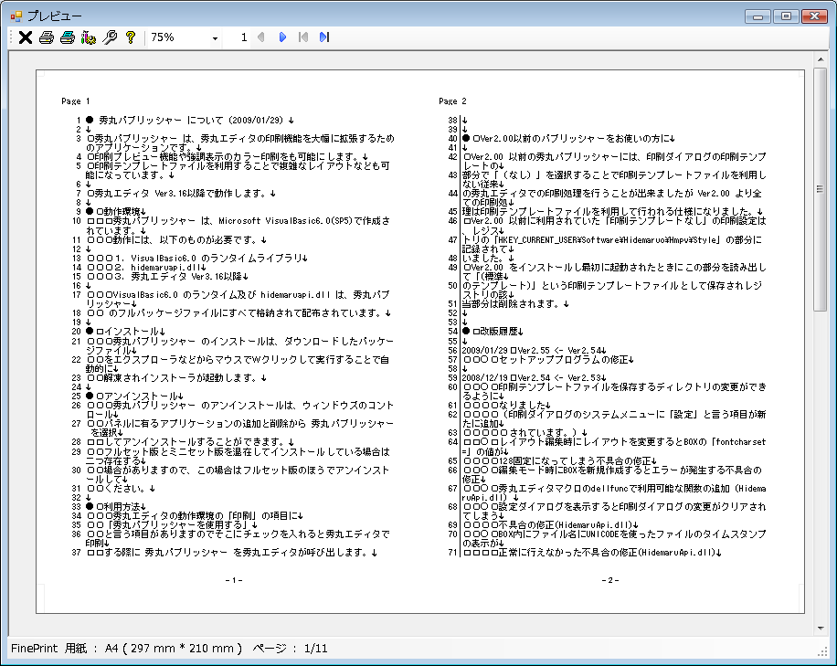 秀丸パブリッシャーVer4.00から従来専用の印刷ツールなどを利用しないと行えなかった中綴じ印刷や平綴じ印刷などの、冊子作成時に利用される印刷機能をサポートしました。