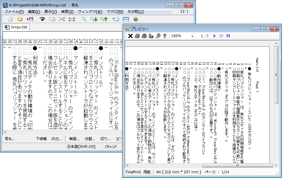 秀丸パブリッシャーは、秀丸エディタの編集画面をそのまま印刷することが出来ます。