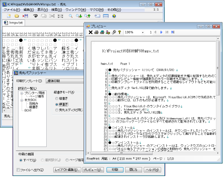 もちろん秀丸エディタで縦書き表示を行っている場合に、強制的に横書きモードで印刷する機能もサポートしています。