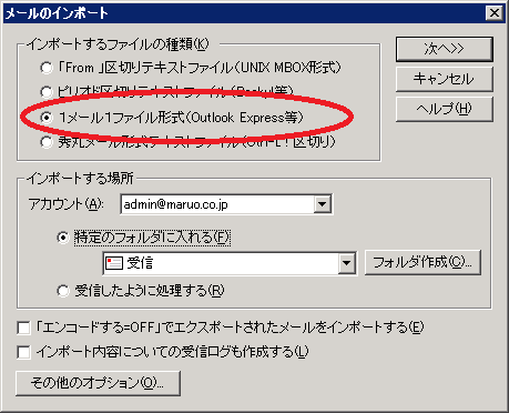 インポートするファイルの種類 = 1メール1ファイル形式(Outlook Express等)