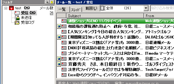 - 秀丸メールの受信フォルダにインポートされます。
